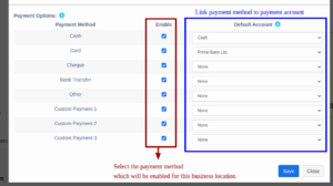 If the payment account is linked then when adding a payment for sales/purchase/expense, on selecting the payment method the payment account will be automatically selected.