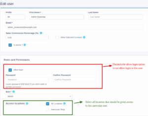 - Sales Commission Percentage (%): Provide the commission % for this user. This option gets applied if the commission agent feature is enabled.